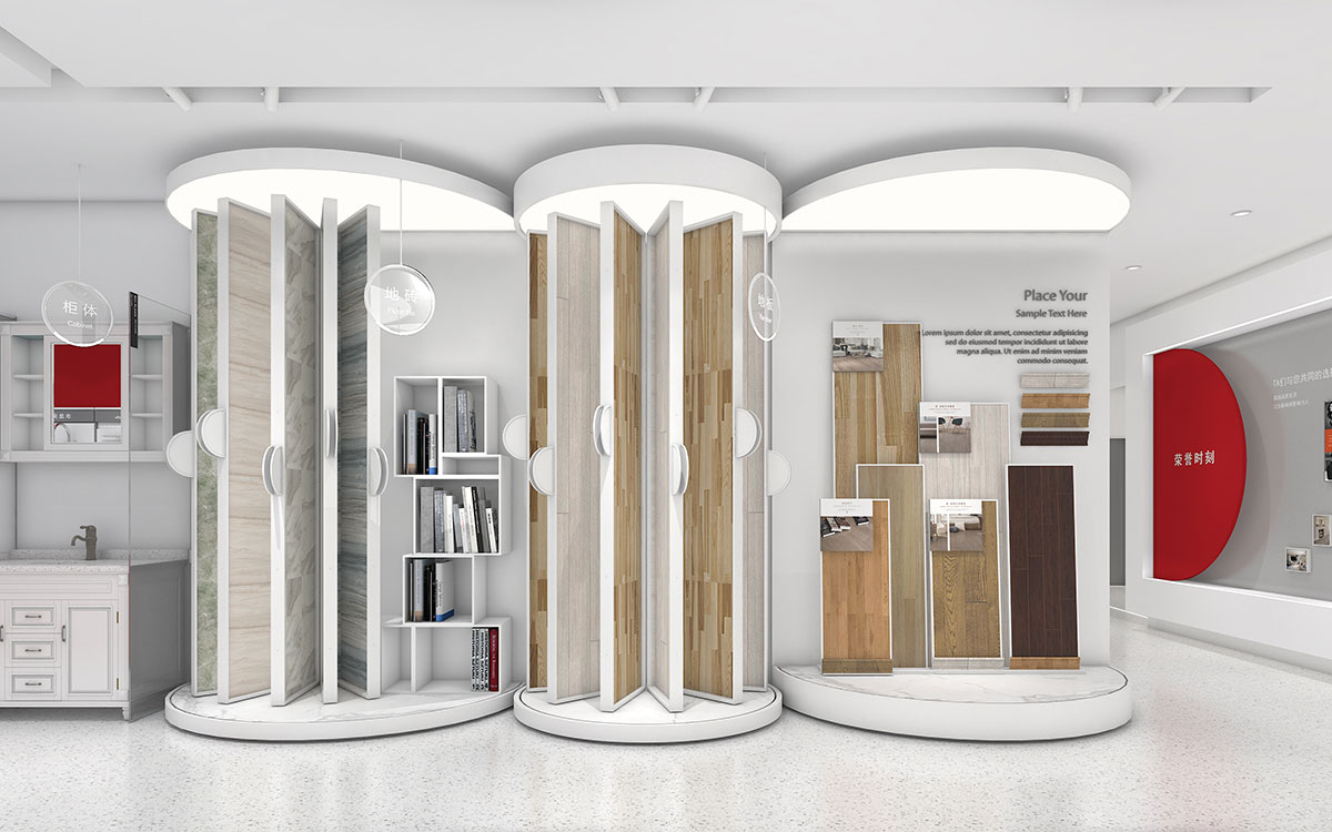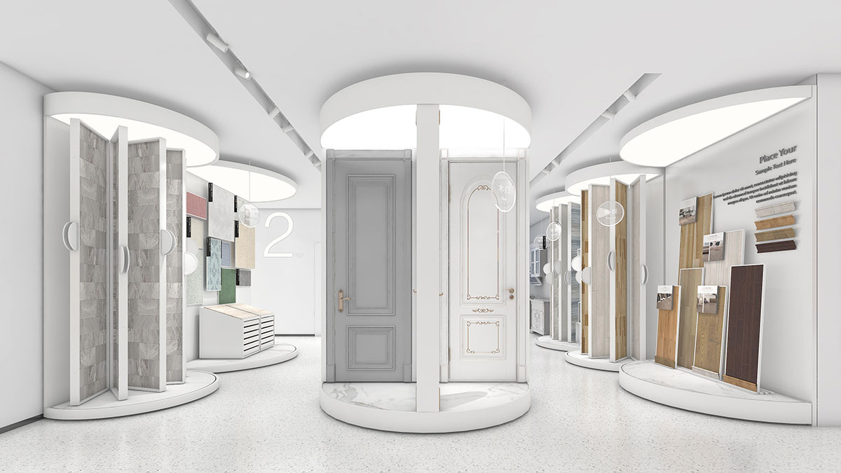 在空間線條的選擇上,我們品牌的輔助圖形相結合,取自其局部圖形。直與曲相結合,使空間簡潔,又不失靈動。在空間的整體模塊空間設計上,我們用體塊交叉的方式,使空間的層次更豐富。